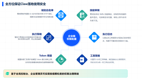 可管:搭建集团、子公司、部门、账户四级租户体系,不同业务单元的智能体在完全隔离的环境中运行,数据互不穿透,管理员可在控制面板统一配置所有AI的行为边界。
