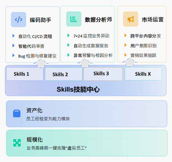 更多企业适用场景,可通过Skills技能中心按需配置。