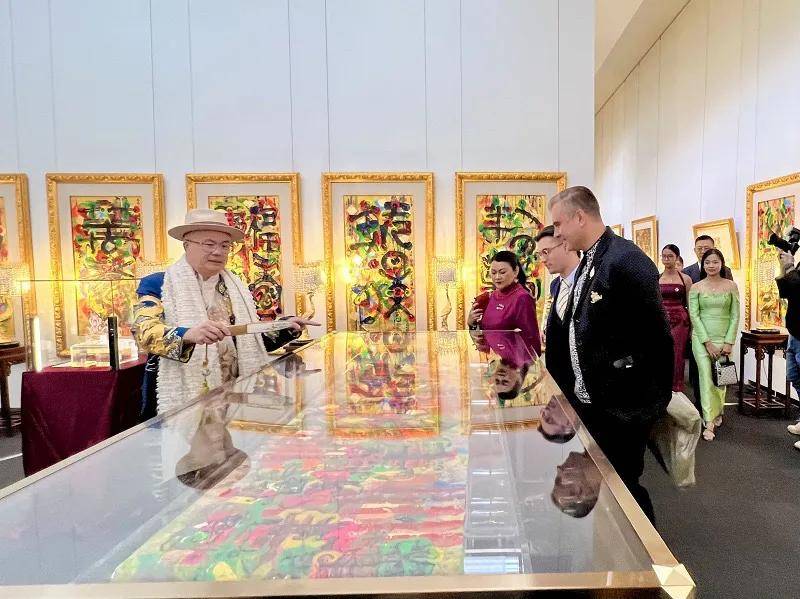展览现场气氛热烈,观众穿梭其间,沉浸于中外文化交融的艺术氛围。参展艺术家也纷纷到场,与观众交流创作心得。尤其是青少年作品区域,吸引了大批观众驻足欣赏,感叹年轻一代对艺术的热情与创造力。此次展览不仅是艺术的集中展示,更是一场跨越国界的文化交流盛会。云龙子大师以其独特的风水书画艺术,架起了中外文化对话的桥梁。