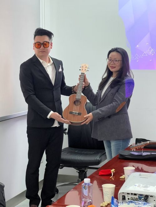 期间北京小野吉他文化传播公司联合创始人小野吉他,沙龙创始人赠送北大纵横一把《小野吉他品牌》尤克里里(建安006)。