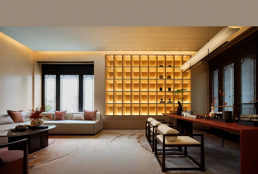 主题墙用的大岩石,就像是一件天然的艺术品,它那清晰的纹理就像岁月的印记,刻画出空间的优雅和大度。这面墙不仅是视觉焦点,更能触动灵魂,每次注视它都能感受到那份沉静和深邃。它舒适的质感也诠释出这里的高贵,仿佛每一寸空间都流淌着贵族的血液,散发着迷人的气息。