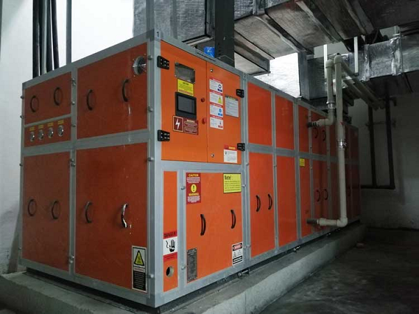值得一提的是,项目还引入了三集一体恒温除湿热泵——这一集成除湿、制冷、加热功能于一体的泳池设备。它不仅能有效控制室内高湿环境,防止墙体结露与结构腐蚀,还能将除湿过程中回收的热量用于池水加热或空间升温,实现能源的梯级利用,真正达成“一机多能、节能增效”的目标。通过这套系统,泳池室内湿度稳定控制在50%~75%的人体舒适区间,水温保持在26~28℃,相比传统加热方式,节能效率甚至达到60%。