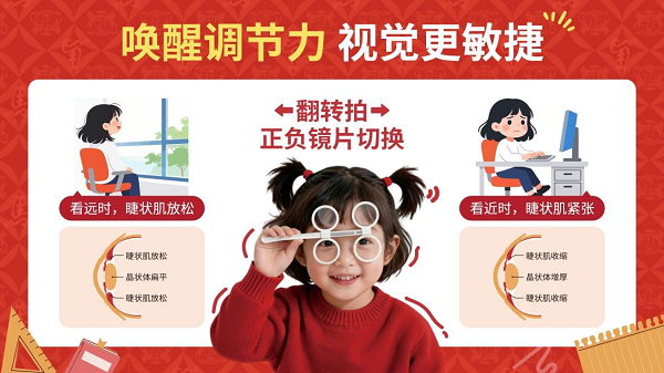 别急,视力守护其实可以像健身一样主动。验光师手里有个“视力小哑铃”——翻转拍。当眼睛因久盯屏幕变得“肌肉僵硬”时,单纯的休息治标不治本。而针对存在特定视觉功能疲劳的人群来说,在专业指导下进行科学的调节力训练,给眼部肌肉科学地“上点强度”,或有助于缓解视疲劳,让视觉反应更敏捷。