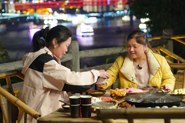 吃火锅时,老公会默默把每一道菜先在水里涮一遍,再喂到她嘴里。没有甜言蜜语,只有日复一日的照顾。两夫妻的日常,就是这样细水长流的幸福。