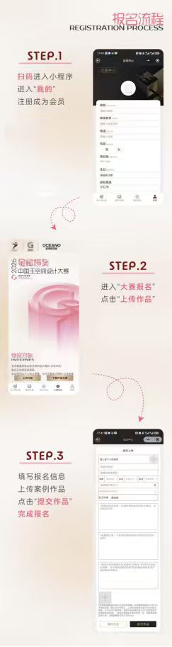 设计师可通过“金橄榄设计力量”小程序免费报名,点击“大赛报名”入口,并提交作品参赛,即有机会赢取研学资格与行业荣誉。