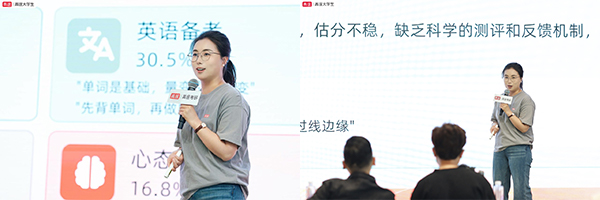 产品升级板块,高途考研产品中心负责人郝丹解读“讲-练-测-评-伴五位一体”服务内核。