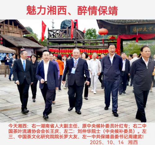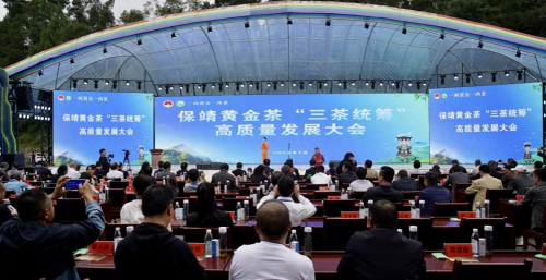 2025 年 10 月 14 日,保靖县村厨村艺晒场茶香四溢,由湖南省红茶产业发展促进会主办,保靖县农业农村局、保靖黄金茶产业发展中心承办的湖南茶产业暨保靖黄金茶 “三茶统筹” 高质量发展大会在此举行。大会以 “三茶统筹” 为核心,设置产业峰会、非遗晒茶、科技赋能三大板块。