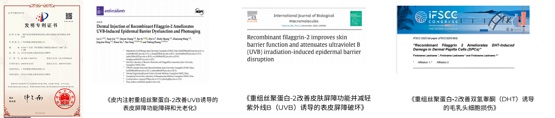 3. 三级功效验证:Rechprotein®FLG 丝聚蛋白经过人体细胞(HaCaT 和DPCs )、光老化动物模型及人体功效试验等三级水平验证,独家发明专利和高水平研究论文为原料的应用和科学传播提供了重要的理论与数据支撑。