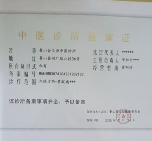 在鲁山钢厂路北段三十六号的晨曦中,“合生源中医诊所”的匾额静卧于老街斑驳的树影下。这间于2024年10月30日注册的个体诊所,正如沙河畔新生的苇叶,在传统医道的土壤中悄然舒展青翠。