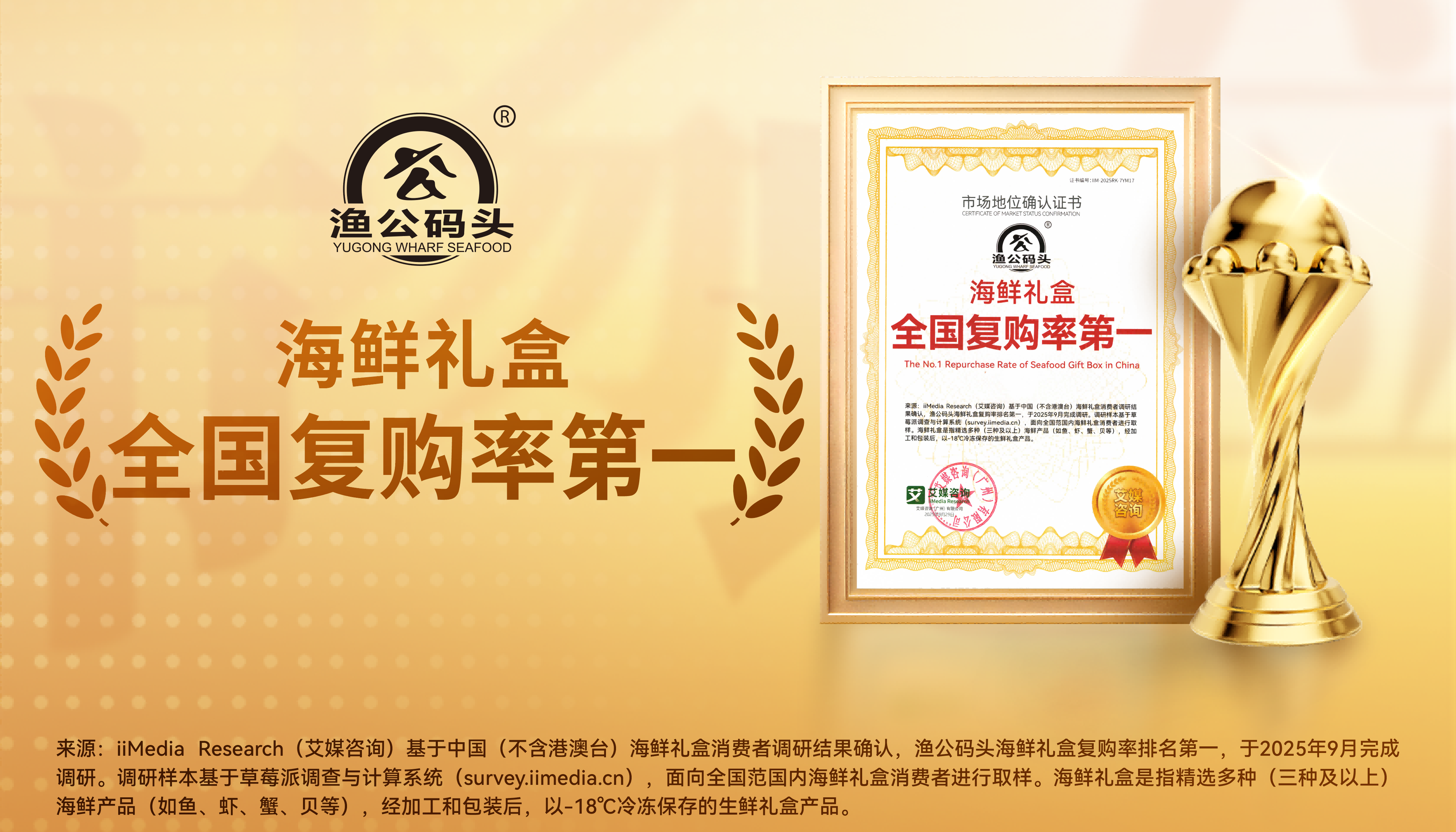渔公码头荣膺海鲜礼盒 中国第一品牌·全国销量第一·全国复购率第一,行业"三冠王"