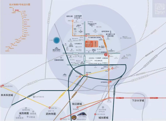 宝龙美致印象中心的战略区位赋予其无与伦比的交通优势。项目紧邻地铁9号线星河路站(直线约0.6公里),更有规划中的18号线将进一步加密轨道交通网络。从这里出发,5站即可直达钱江新城,换乘3号线可至武林广场、城西科创大走廊。