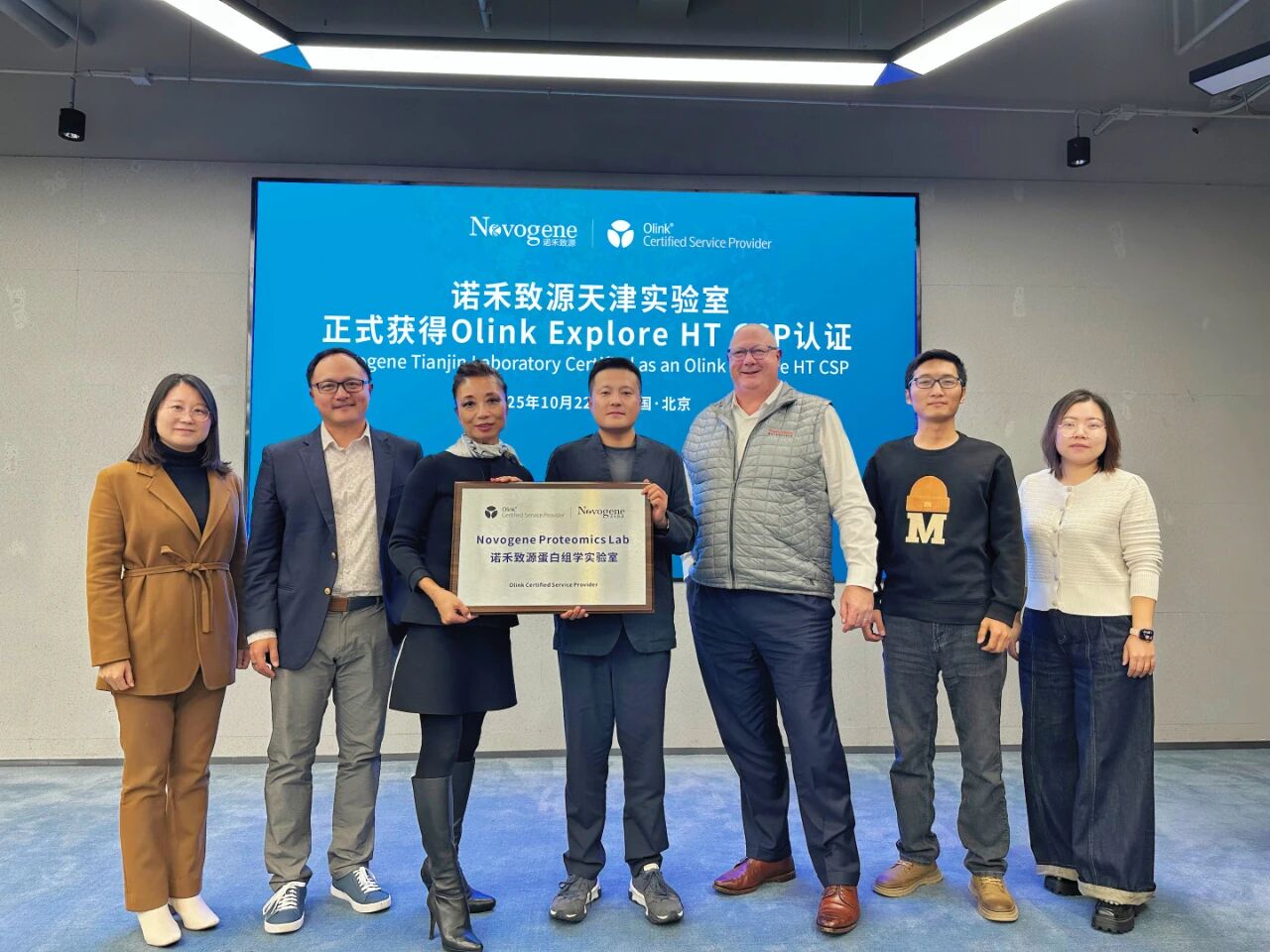2025年10月22日,诺禾致源与Olink Proteomics举行高层会谈,双方围绕蛋白组学市场发展趋势、用户需求与产品规划等议题展开深入交流并达成重要共识,未来将持续推动蛋白组学技术的应用与创新,助力广大科研工作者提升生命科学研究效率与深度。会谈期间,双方共同见证了诺禾致源与Olink共建蛋白组学实验室的进展,以及天津实验室顺利完成Olink Explore HT CSP (Certified Service Provider) 认证的重要时刻。