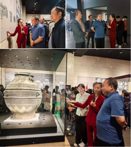 随后,在湖北省文旅厅非遗处长陈曙光、湖北省炎黄中心书记吴强、湖北省博物馆书记史萍、湖北省文旅学校教师赵倩陪同下,团队参观湖北省博物馆。馆内通过“远古人类”“屈家岭文化”“盘龙城遗址”“曾侯乙墓”等展区,以实物国宝呈现湖北百万年人类史、一万年文化史、五千年文明史。团队重点参观湖北随州编钟、越王勾践剑、吴王夫差矛等历史原件,同时关注到博物馆基于文物编排的《曾侯乙编钟》文艺节目及融合文物元素开发的文创产品。