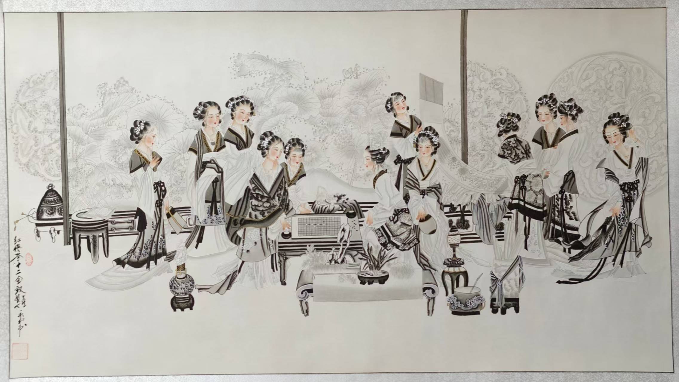 此次展览汇集了全球20多个国家的300余件水墨作品,梁永和的作品以"传统笔墨的当代转译"成为焦点。某著名水墨画家、艺术评论家指出:"梁永和作品将中国文人画的'逸格'精神与现代视觉经验完美融合,展现了水墨艺术在21世纪的无限可能。"这种融合背后,是梁永和数十年如一日对艺术语言的雕琢——他独创的"没骨重彩"技法,将天然矿物颜料与水墨层次结合,让《红楼十二金钗》系列既有着工笔的细腻,又不失写意的灵动,该系列曾被"股神"沃伦·巴菲特收藏,并称其"代表了中国书画艺术的新成就"。