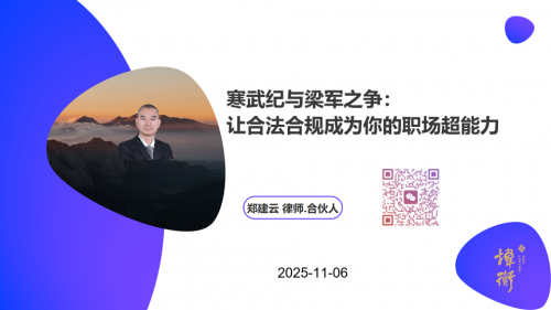 在快速变化的商业环境中,合法合规已从被动遵守的外部要求升级为个人职场核心竞争力的核心组成部分。“当劳动者能够主动理解和运用职场规则逻辑时,法律就不再是约束,而成为护航职业发展的‘超能力’。”郑建云律师总结道,“在个人发展与组织战略之间寻求平衡,需要的不仅是对企业战略发展的理解、对职场规则的尊重,还有对权利的和平、理性主张。这种平衡艺术,正在成为当代职场中最可持续的竞争力。”