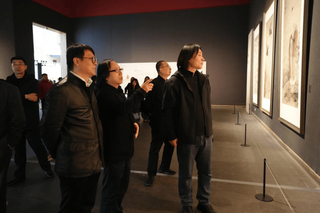 山东省文化和旅游厅党组书记、厅长喻剑南,北京印刷学院党委副书记、院长田忠利,中国女画家协会会长、中国国家画院副院长徐涟,中国国家画院党委副书记、纪委书记王青云,中国国家画院原副院长张晓凌、张江舟、曾来德、纪连彬、于文江,荣宝斋画院名誉院长唐辉,及霍春阳、蒋代明、丰羽、赵建成、石齐、范扬、邢少臣、江宏伟、陈传席、纪清远、王克举、南海岩、邓远坡、蔡葵、刘彦水、李福顺、刘罡、王珂、郝孝飞、刘海勇、王海滨、刘波、阴澍雨、崔进、曾三凯、石峰、王德芳、江鹏、谢晓红、茹峰、余宏达、罗江、王发荣、周一新、石纲、李明、张之军、王潇、莫晓松、蔡玉水、张公者、赵方方、杨云帆、尹建国、黄小波、李剑、孙凡汝、朱建国、董雷、卜登科、吴涛、袁学军、邓柯、陈明、谢小铨、李虹霖、任明辉、金新、王跃奎、陶宏、杜浩、洪厚甜、卢志强、曹俊、郑琳、石磊、刘西洁、黄和平、钱晓鸣、石岩、屈菡、于瀛、邵莉、叶枫、李洋、孙震生、党震、付振宝、王进、张剑、任军伟、李志国、蒋一辉、刘广、张苑、冯知军、颜培大、盛鸣、姜宝昌、乔维、廖勤、李鹏程、赵伟、石村、石满、霍立啸、张烨、杨晶、丛佳琳、朱德华、张如学、魏迪;中共山东省委宣传部文艺处处长、二级巡视员尹永海,山东出版集团党委委员、副总经理李晋,山东省文化和旅游厅艺术处处长刘芳,山东省美术家协会名誉主席张望,山东省美术家协会驻会副主席兼秘书长张宜,山东画院院长常朝晖,山东师范大学美术学院院长刘明波,及柴安东、季桦、李晓雯、沈颖、王居明、上官超英、王磐德、樊磊、孙棋、吴磊、王文灏、刘宁、徐琳、宋述林等300余位来自全国各地的领导、嘉宾和数百位艺术爱好者参加了开幕式。开幕式由杨晓刚主持。