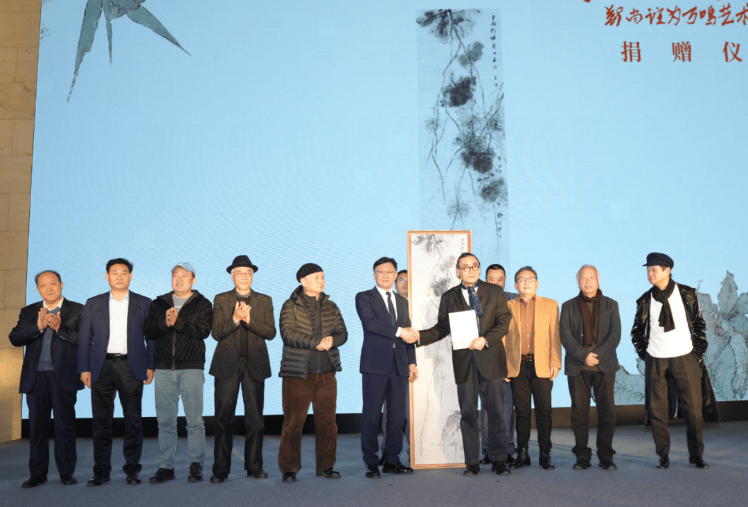 开幕式上,中国美术馆馆长潘义奎,中国美术家协会原分党组书记、驻会副主席徐里,中国文化艺术发展促进会主席、中国国家画院原院长杨晓阳,中国国家画院党委书记燕东升,中国艺术研究院副院长徐福山,北京画院院长吴洪亮,浙江省博物馆党委书记、馆长纪云飞,中国国家画院美术馆原馆长何加林,中国国家博物馆基金会理事李存友先后致辞。随后,在中国美术家协会副主席贾广健,画家尹毅,中国工笔画学会会长陈孟昕,中国艺术研究院国画院院长牛克诚,文物专家吴欢,全国政协委员、叶氏企业集团有限公司董事长叶青,北京百海凝慈善基金会创始人白海宁,恒祥基业集团董事长、北京市工商联合会副会长李明,李存友,以及中国侨联常务副会长杨长林的共同见证下,刘万鸣将精心创作的艺术作品赠予山东美术馆,由山东美术馆馆长杨晓刚代表山东美术馆接受捐赠,并向刘万鸣颁发收藏证书。刘万鸣致答谢词。最后,山东省人大常委会党组书记、副主任杨东奇,中国文联副主席、中国民间文艺家协会主席潘鲁生,燕东升,杨晓阳,中国国家画院原院长卢禹舜,中国美术家协会原副主席闫平,中国美术家协会原分党组书记、副主席马锋辉,荣宝斋有限公司党委书记赵东,徐福山,中国美术家协会分党组成员、副秘书长、一级巡视员朱虹子,中国美术家协会副主席李翔,原江苏省文化厅一级巡视员、中国画学会创会副会长高云,书画频道董事局主席王平共同为展览启幕。
