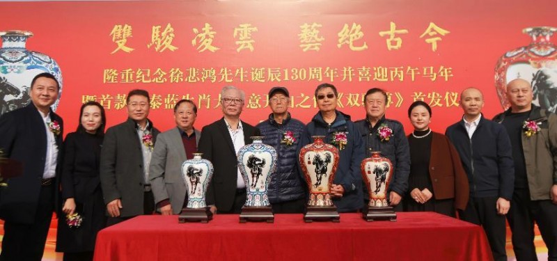 时值徐悲鸿先生诞辰 130 周年与丙午马年将至的双重文化节点,以“双骏凌云 艺绝古今”为主题开展的首款景泰蓝生肖大写意开山之作《双骏尊》首发仪式于近日在京盛大启幕。故宫博物院原常务副院长李季、一代艺术教育大家徐悲鸿先生长孙徐小阳老师、著名油画艺术家冯法祀之子冯世光先生、中国工艺美术大师霍铁辉、北京工艺美术大师丁明鸿以及冯延明大师等领导嘉宾齐聚现场,共同见证了这件融合悲鸿艺术风骨与非遗景泰蓝工艺的匠心之作的诞生。