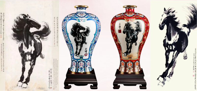 《双骏尊》以徐悲鸿先生两幅经典写意《奔马图》为创作蓝本