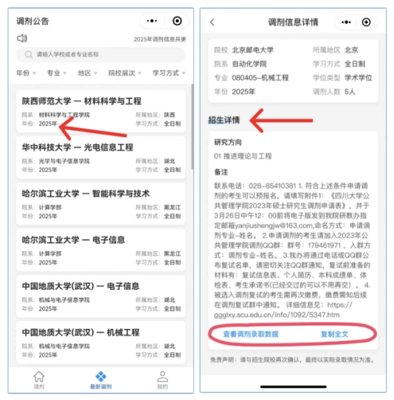 调剂阶段,“时效性” 决定成败。研加加调剂小程序的 “最新调剂信息” 板块,让你不再错过任何关键消息。这里不仅收录了往年院校公布的调剂公告,作为参考依据;今年的调剂信息更是通过多渠道获取,实时更新同步 —— 无论是院校发布的调剂名额公告,还是调剂要求调整,你都能第一时间知晓。