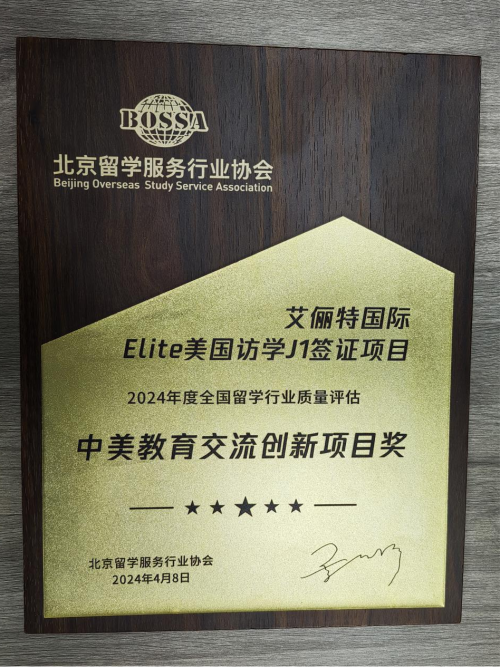 Elite美国访学J1签证项目获评 2024 中美教育交流创新项目奖