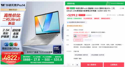 双十一期间,华硕无畏Pro16 2025支持至高863.9元政府补贴(购机活动详情还请咨询店内客服),到手仅7775.1元;华硕无畏Pro14 2025,PLUS会员可享27.8元专属优惠,支持500元PLUS优惠券,叠加至高535.8元政府补贴(购机活动详情还请咨询店内客服),到手4822.7元,相比同配置机型价格超香。