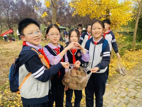 下午,“薯田拾趣”劳动实践体验活动在该校劳动基地“幸福时光”展开。在红薯田里,同学们手持小铲子,弯腰刨土,小心翼翼地拔出红薯,亲身感受“丰收的喜悦”;在劳动工坊里,大家磨豆子、剥玉米,体会传统农业工艺的独特魅力;田间空地上,烤红薯的焦香弥漫开来,同学们围坐在一起,分享着香甜软糯的成果。微风轻拂、落叶飘零、夕阳西下,美景与美情相得益彰,一首《悯农》响彻农场。充实快乐的一天即将结束,同学们拿起纸笔,静静地记录下一天的收获与感受。