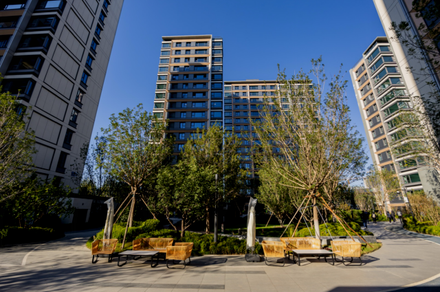朝阳港总占地面积约370万平米,定位为宜居的国际生活区、世界级城市生活样本,是朝阳“南部崛起”的重要标志性象征。作为首都国企的金隅,自2021年起笃定深耕朝阳港,四年斥资两百亿,实现了一纸蓝图到一片国际住区的蜕变,已建成的云筑系列三期住宅产品总建筑面积约28万㎡,前三期共约1300户,以“超级大盘”的影响力,导演了一场从产品到生活方式、从建筑语言到城市界面的整体跃迁。