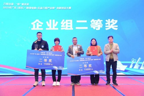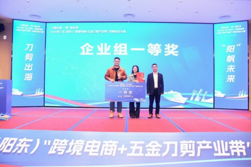 颁奖仪式上,颁奖嘉宾依次为获奖项目和单位颁奖。沉甸甸的奖牌与荣誉证书,不仅是对参赛主体创新实践的肯定,更是对阳东跨境电商+五金刀剪产业融合发展的期许。