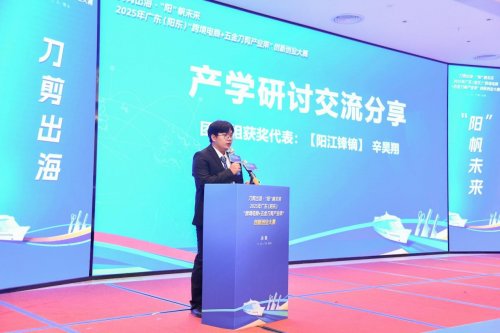 在产学研讨交流环节,团队组获奖代表、【阳江锋镝】项目负责人辛昊翔分享了年轻团队深耕跨境细分赛道的创业心得,介绍了项目在产品差异化设计与海外社群运营中的创新做法。企业组获奖代表广东汉道户外装备有限公司负责人,结合企业深耕户外刀具领域的实践经验,阐述了传统制造企业通过跨界营销、品牌数字化转型实现跨境突围的路径,其与影视IP合作提升品牌曝光度的案例引发广泛共鸣。阳江技师学院电商专业带头人张三权老师则从人才培养角度出发,分享了校企合作共育跨境电商复合型人才的模式与成果,为产业发展提供智力支撑方案。三场干货满满的分享,搭建了产学研用深度交流的桥梁,为产业协同发展提供了多元思路。