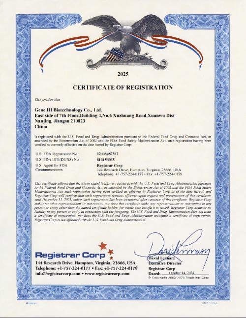 美国FDA备案、GRAS(Generally Recognized as Safe)安全认证。