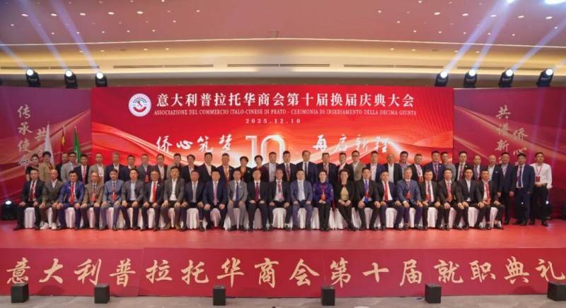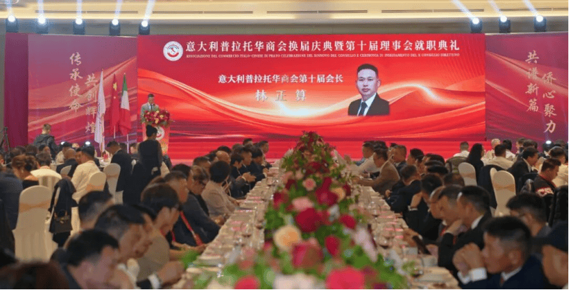 2025年12月10日,意大利普拉托华商会第十届换届庆典大会在普拉托市东方明珠大酒店盛大举行,林正算先生众望所归荣任新会长。