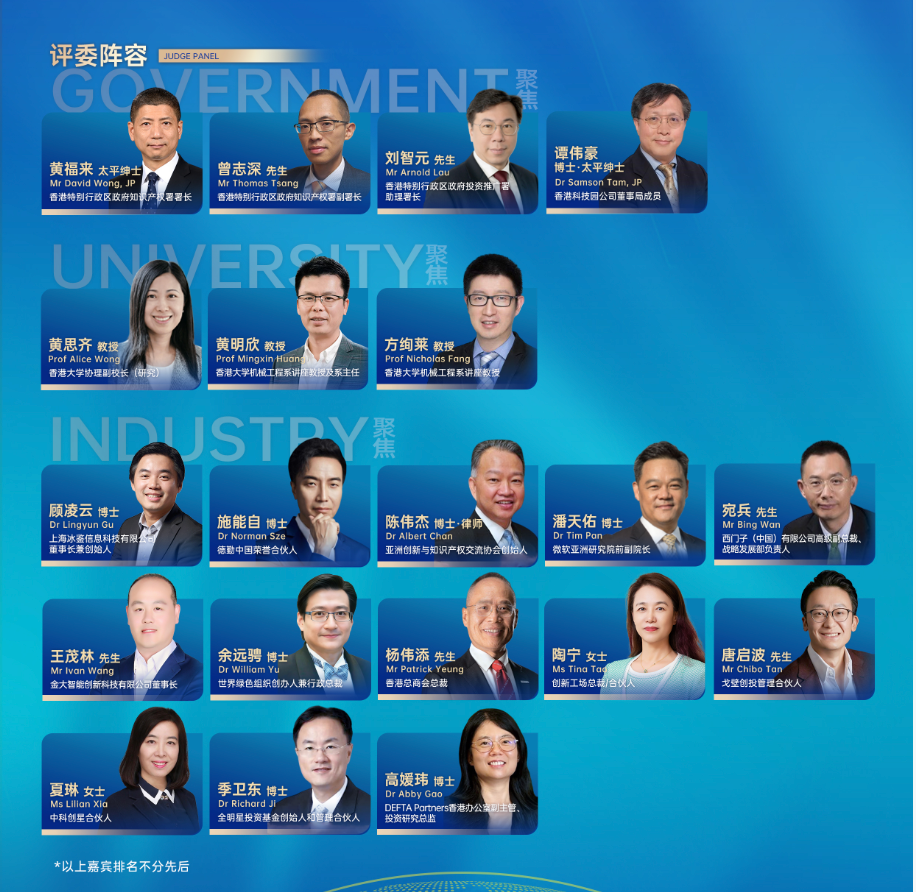 本届大赛由香港特别行政区政府知识产权署、香港特别行政区政府投资推广署、中国联通国际有限公司、亚洲创新与知识产权交流协会、香港科技园、香港数码港管理有限公司、香港大学技术转移处、香港大学青年科创学院、香港大学iDendron、香港大学创业天使联盟、香港大学创业引擎基金参与协办;上海市普陀区科学技术委员会、临港集团为大赛提供特别支持。