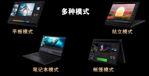 更值得称道的是它的360°翻转设计,支持平板、站立、帐篷、笔记本四种灵活模式,写生绘画时用平板模式精准触控,团队讨论时切换站立模式分享方案,户外取景时以帐篷模式节省空间,多场景需求一键适配。