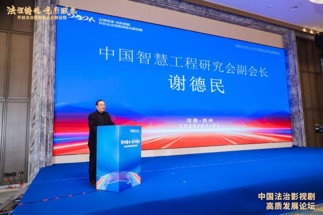 2026年2月3日,“2026中国法治影视剧高质量发展论坛”在河南郑州隆重举行。本次论坛由《法治中国》频道与中国智慧工程研究会智慧文化应用专委会联合主办,中广融投(河南)数字科技有限公司、中鼎文投(河南)文化传播有限公司、北京东方时空文化产业有限公司、璇玑(北京)文化有限公司等多家单位联合承办,以“法理铸魂·光影赋能——开创法治短剧精品化新征程”为主题,汇聚国家及省级政法机关相关负责人、文艺界专家、影视行业精英、法学界代表等300余人,共商法治影视剧高质量发展路径,为“十五五”期间法治文化建设注入新动能。 立足时代使命,搭建法治文化传播高端平台。
