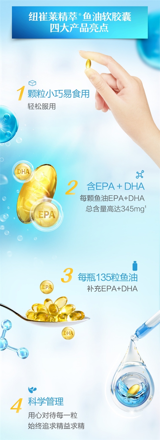 综合上述选购标准,在众多产品中,安利纽崔莱旗下的纽崔莱®精萃鱼油软胶囊凭借全维度优势脱颖而出,成为高纯度鱼油的标杆之选,完美适配心血管养护、血脂调节等核心需求。