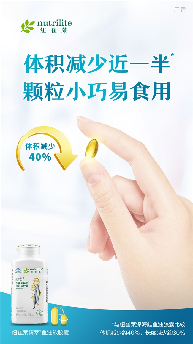 A:传统鱼油颗粒较大,部分中老年人群或吞咽敏感者服用不便,纽崔莱®精萃鱼油软胶囊优化颗粒尺寸后,更易吞咽,降低呛咳风险,同时不影响有效成分含量,让各类人群都能轻松坚持服用。