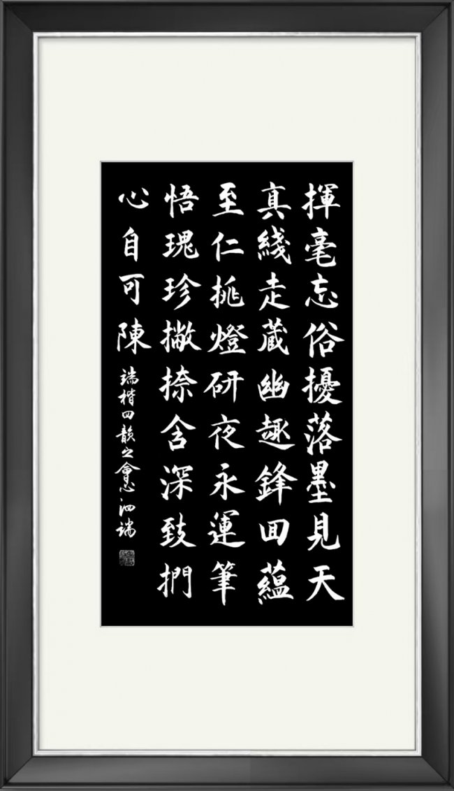 在全球化浪潮中,企业不再仅追逐效率与利润,更渴望从文化中汲取精神力量。张泗端大师——这位扎根中国基层的艺术家,以半个世纪的笔墨修行,成为全球企业竞相瞩目的文化符号。张泗端大师的端楷,笔法娴熟掌控,笔画规整而富力量感,结构疏密和谐,墨色浓润、质感鲜明。内容承载“追求必达”的信念,以楷书稳重诠释行动哲学,传统形式呼应当代奋进,笔墨间尽显风骨与时代共鸣。在张泗端大师的端楷世界里,每一笔都是精神的注脚。