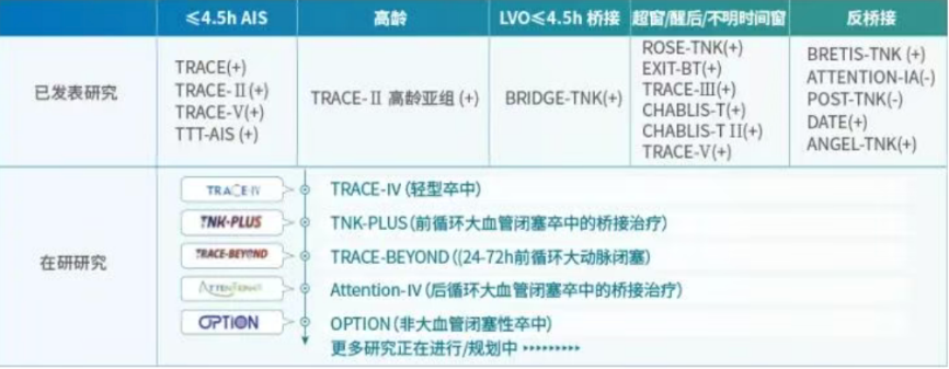 目前,针对轻型卒中的 TRACE-IV 研究、针对前循环大血管闭塞卒中的桥接治疗研究TNK-PLUS、针对24-72 h前循环大动脉闭塞的TRACE-BEYOND研究、针对后循环大血管闭塞卒中的桥接治疗研究 ATTENTION-IV,以及针对非大血管闭塞性卒中的 OPTION 研究等,正在从不同维度持续拓展中国替奈普酶的循证边界。