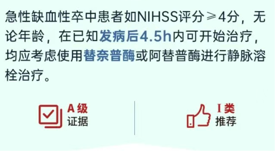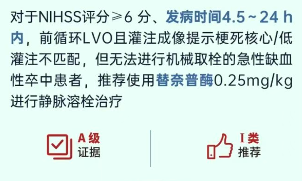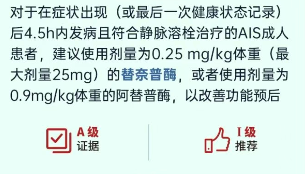 中华医学会《中国急性缺血性卒中诊治指南2023》正式发布4,替奈普酶获I A类推荐。