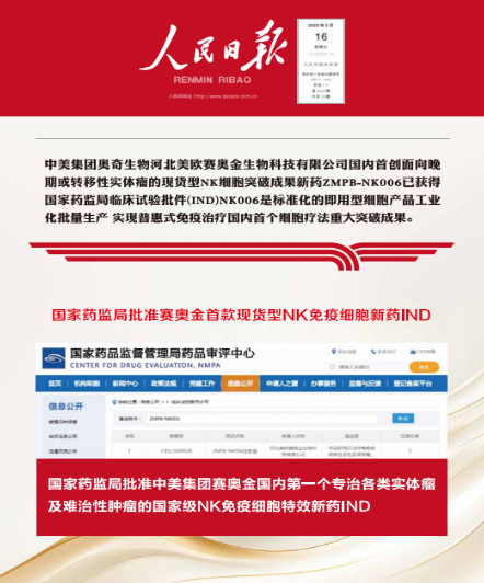 依托中美赛奥金集团全链条的技术支撑与产业布局,ZMPB-NK006有望在后续临床试验中持续取得突破,进一步优化治疗方案,扩大临床应用范围,推动全球免疫治疗产业进入“实体瘤攻坚新时代”,破解六大实体瘤治疗难题,助力实现“全民抗癌、普惠抗癌”的目标,为全球肿瘤患者的健康保驾护航。
