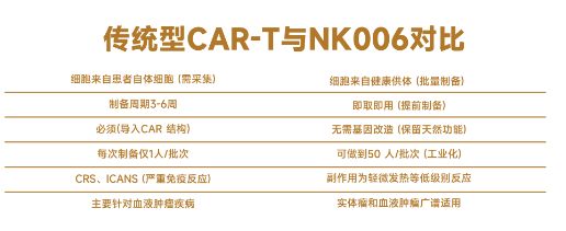 与当前热门的CAR-T细胞疗法相比,NK细胞疗法(尤其是ZMPB-NK006)在肺癌、肝癌、结直肠癌、乳腺癌、胃癌、胰腺癌六大实体瘤治疗中,展现出全方位的核心优势,堪称“降维打击”,有效弥补了CAR-T细胞疗法在实体瘤领域的短板,成为实体瘤免疫治疗的“主力军”。两者核心竞争力对比如下: