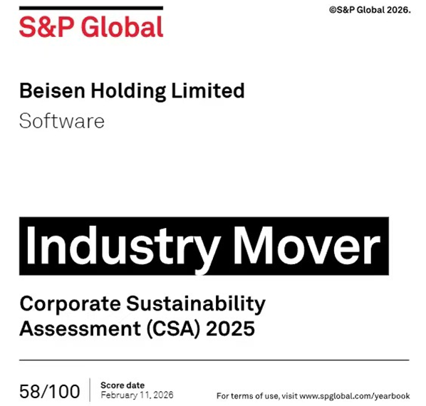 标普全球可持续发展评估(CSA)为全球最具影响力的ESG评估体系之一,其评选基于标普全球企业可持续发展评估(CSA)结果。2026年全球共有9200余家企业参评,848家脱颖而出成功入选今年的《可持续发展年鉴》,其中中国企业共计57家。北森凭借在环境、社会与治理维度的系统性实践及显著进步,继2025年首次入选标普《可持续发展年鉴(中国版)》后,今年首次入选全球年鉴,并荣膺全球软件行业唯一的最佳进步企业奖(Industry Mover),体现出国际评级机构对公司可持续发展能力和表现的高度认可。