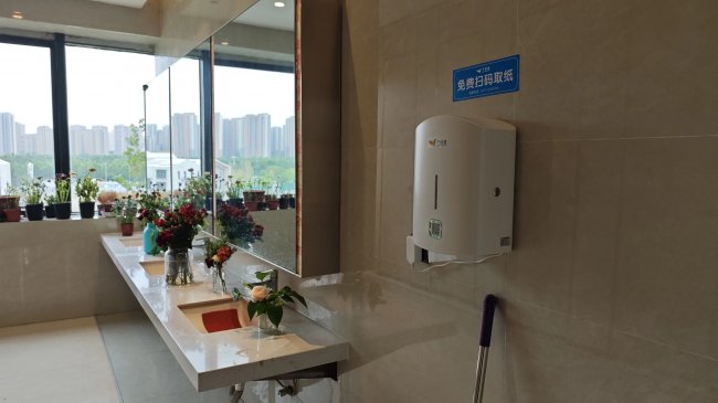 图片2:千纸盒智能出纸机落地景区公厕,与景区环境相融,成为便民服务新亮点