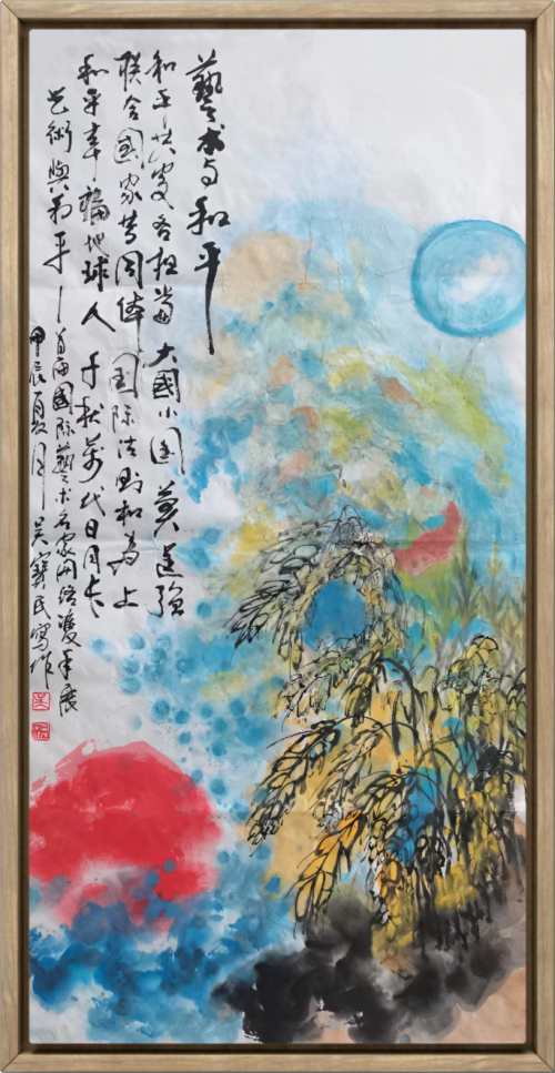吴宝民,1953 年生,江苏沛县人,中共党员,高级政工师,中国作家协会会员,江苏省作家协会会员,中国书法家协会会员,中国新艺委会客座教授,特聘中国人民书画艺术研究院副院长,北京心海文化艺术研究院研究员。1985 年江苏省人民政府录用为国家干部,曾任沛县县委宣传部新闻科科长,沛县广播电视局副局长兼县电视台台长、局党委书记,沛县文化与体育局党委书记,局长,沛县县委宣传部副部长兼县文学艺术界联合会主席、徐州市作家协会副主席,创刊文艺杂志巜百家》兼任总编。1976 年开始在报刊杂志发表业余文艺作品,2011 年作品入选江苏省作家协会全国作家书画邀请展,并获“文心墨语”荣誉奖,2014年书画《故乡情怀系列》荣获中国文化产业发展专项资金全国文化艺术大赛金奖,2016年《鸭唱荷花池》入选央视书画频道展播并收藏,2018年《五十六个民族一家亲》《共享家园》等作品先后参加中国多民族作家协会和首届中国作家协会书画院全国作品展,收藏并获奖,2019 书画作品入选中央电视台《中国艺术榜样年鉴》,2021 年官方建党 100 周年,荣获德艺双馨《人民艺术家》荣誉称号。2023 年 巜光明日报》艺术界领军人物艺术特刊发行,中国邮政.澳门邮政等联合出版发行国礼.国家名片珍藏邮册,同年荣获巜世界文化交流突出贡献奖,2024年文化两创,授予“国际非遗领军人物”荣誉称号“,同年第六届中国书法兰亭书展”作品《大风歌》入展,9月参加中俄友谊艺术展获金奖,第八届全国艺术典范“人民的瑰宝”获艺术奖,入选《中国馆藏级艺术家》,2025中国文联开年文献特邀展获“史诗”奖,中国文联、中国文联文艺研修院授予“共和国艺者”荣誉称号,中国报道文联认证2025书画行业贡献人物,文学作品入藏中国当代代表作陈列馆,传略入载《中国作家会员词典》。