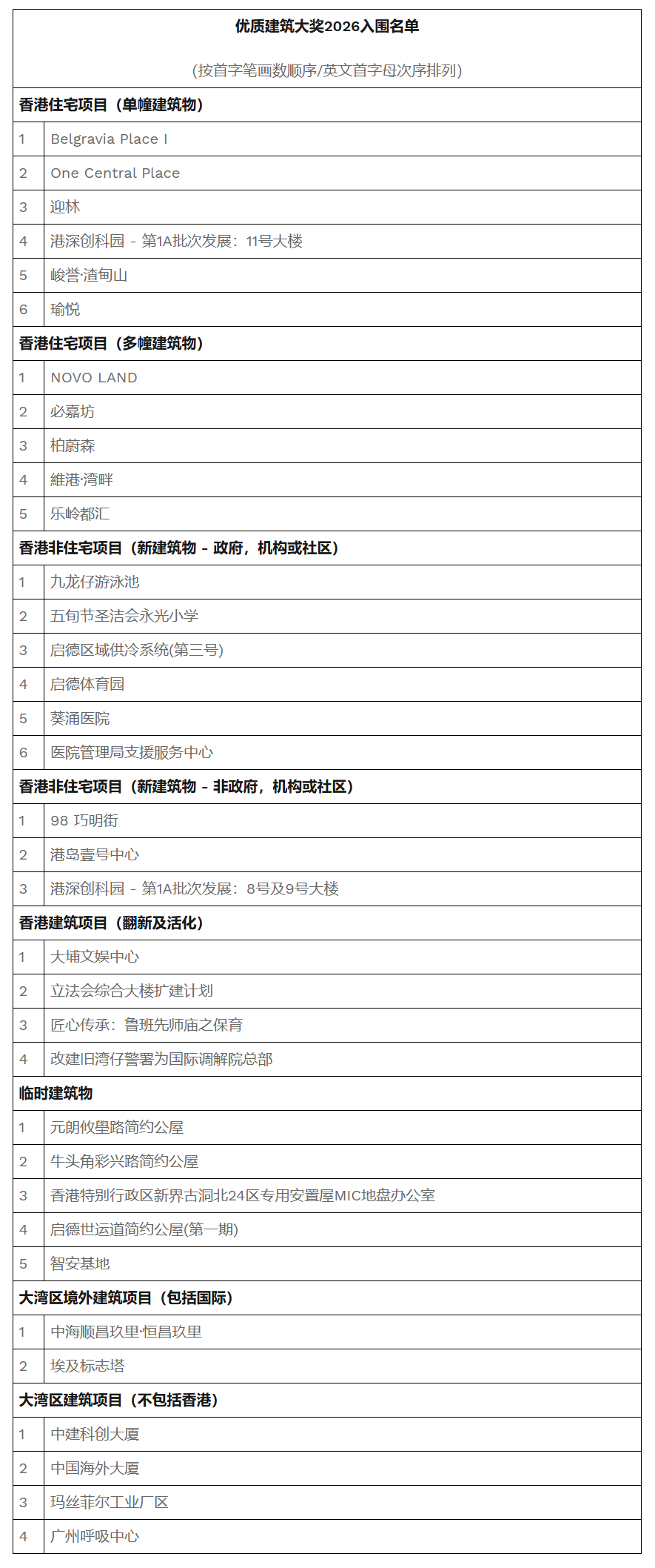 优质建筑大奖2026入围名单公布