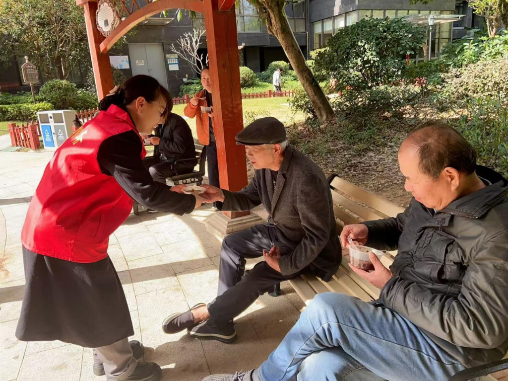 活动现场,党员与物业人员为长者奉粥、闲话家常,并引导孩子们为爷爷奶奶喂粥,让孝道文化代代相传。针对高龄、独居等行动不便的老人,由党支部与社区组成的“暖心送粥小分队”开展“送粥入户”行动。志愿者们带着热气腾腾的拗九粥和太平面走访慰问,与老人亲切交谈,倾听心声,将党组织的温暖实实在在地送到居民心坎。