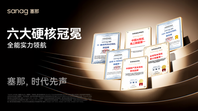 塞那,沙利文认证的中国国产耳夹耳机首创者和全国耳夹耳机累计销量第一;尚普咨询认证的“全球AI耳夹式耳机销量第一”;洛图科技报告显示,2025年上半年塞那AI耳机中国市场销量占比达49%,意味着每卖2台AI耳机就有一台塞那。这些不是短期营销,而是用户用时间投出的长期信任票。
