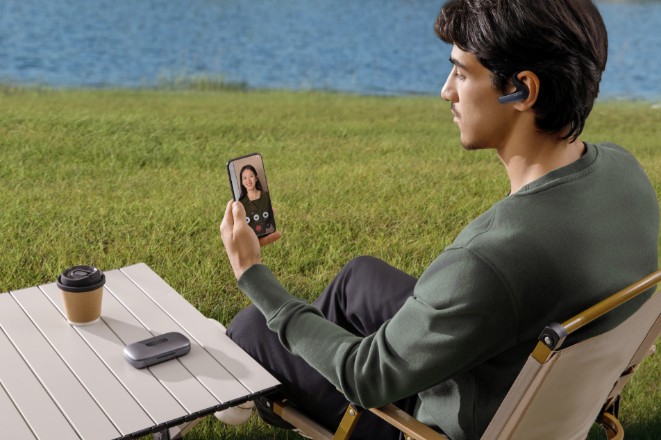 它采用开放式挂耳设计,通过了SGS舒适度认证,基于全球海量耳型数据适配不同耳形。无论是开一整天的跨国会议,还是连续几天奔波于展会现场,耳朵都不会胀痛。