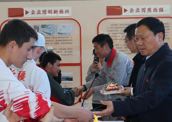 4月2日的活动现场,主题党日活动同步启幕,全体党员面向党旗重温入党誓词,铿锵有力的誓言彰显着党员干部践行公益、帮扶残障群体的坚定决心;随后,全体人员开展集体学习交流,凝聚党建引领公益的强大合力,活动还为新疆中驼党员赠送图书,推动党建与公益实践深度融合、互促共进。